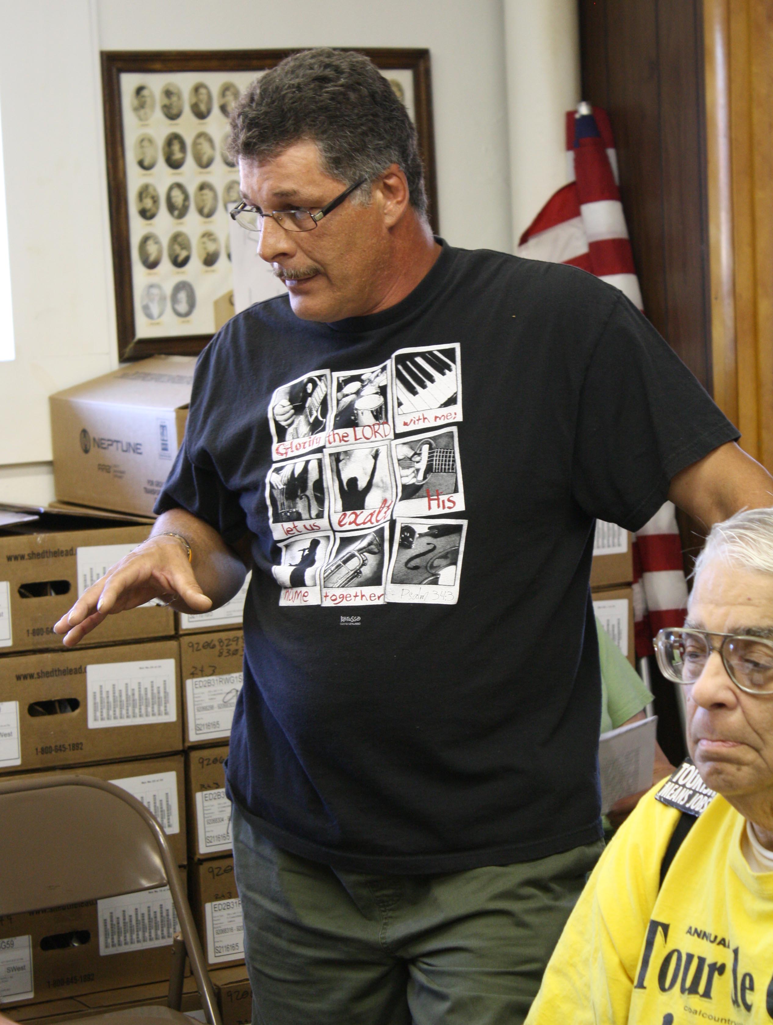 Don Frontone explains the electricity aggregation to the council and citizens in attendance at the meeting.