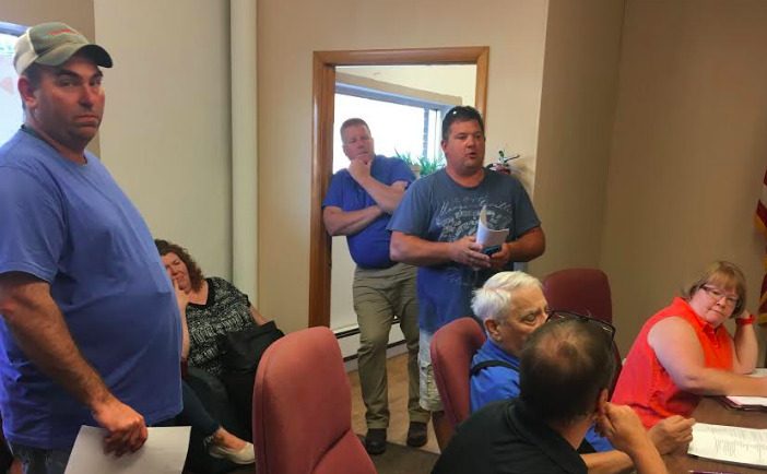 Flanked by committee members Colin Overmeyer and Rob Dobrino, Anthony Kravanya addressed members of the Benld City Council on the committee’s plans to establish a non-profit organization to raise funds and manage development of the former Benld Elementary School property as a public park.