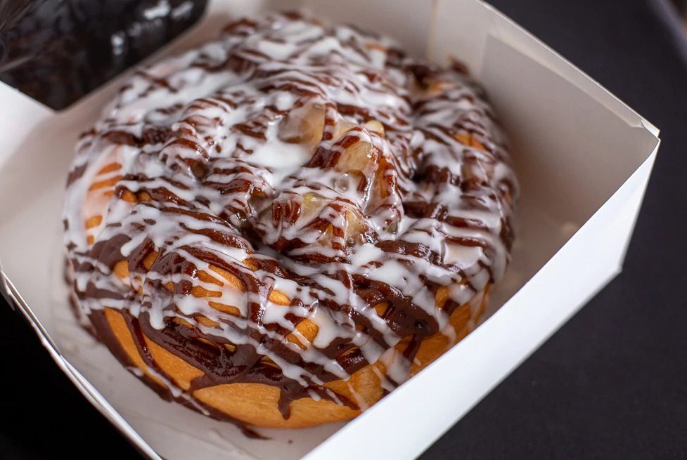 The Big Cinn is a large cinnamon roll covered in a Brown sugar schmear that will feed 4-5 for breakfast or 8 for a snack. Baked fresh they have a shelf life of 3-5 days and freeze well.