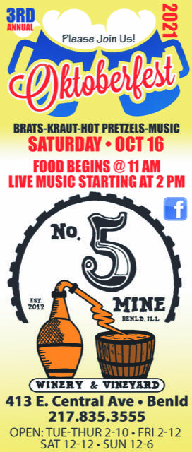 Number 5 Mine Winery in downtown Benld is hosting their third annual Oktoberfest celebration on Saturday, October 16 from 11 a.m. until close.