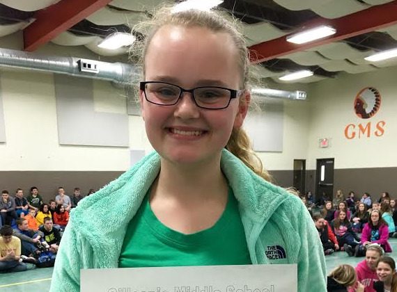 She was nominated for the award by science teacher Mr. Lamore who said she is always willing to help others when they need it. “She is an excellent representation of a GMS student both in and out of the classroom,” Lamore said.