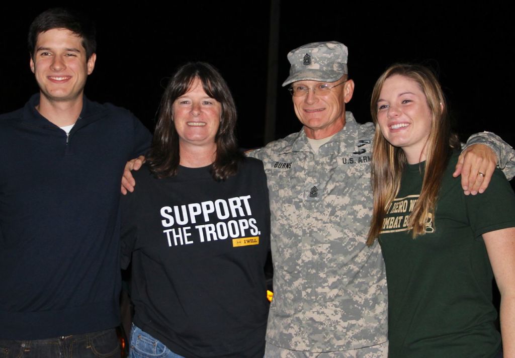 “I remember coming to school and oddly nearly everyone was wearing the same green shirt. When I finally took the time to stop in the hallway to read one of the shirts, it said, ‘My Hero Wears Combat Boots… CSM Burns.’, Burns recalled before he left on his third deployment in 2014. “It made me feel really good to be appreciated by the student body.”