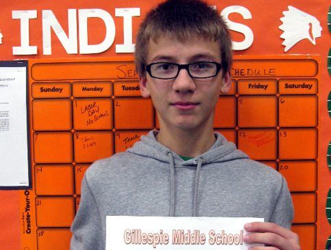Eighth grade student Alex Jasper is the Leader of the Week at Gillespie Middle School for the week of September 15. Physical education teachers, Miss Bray...