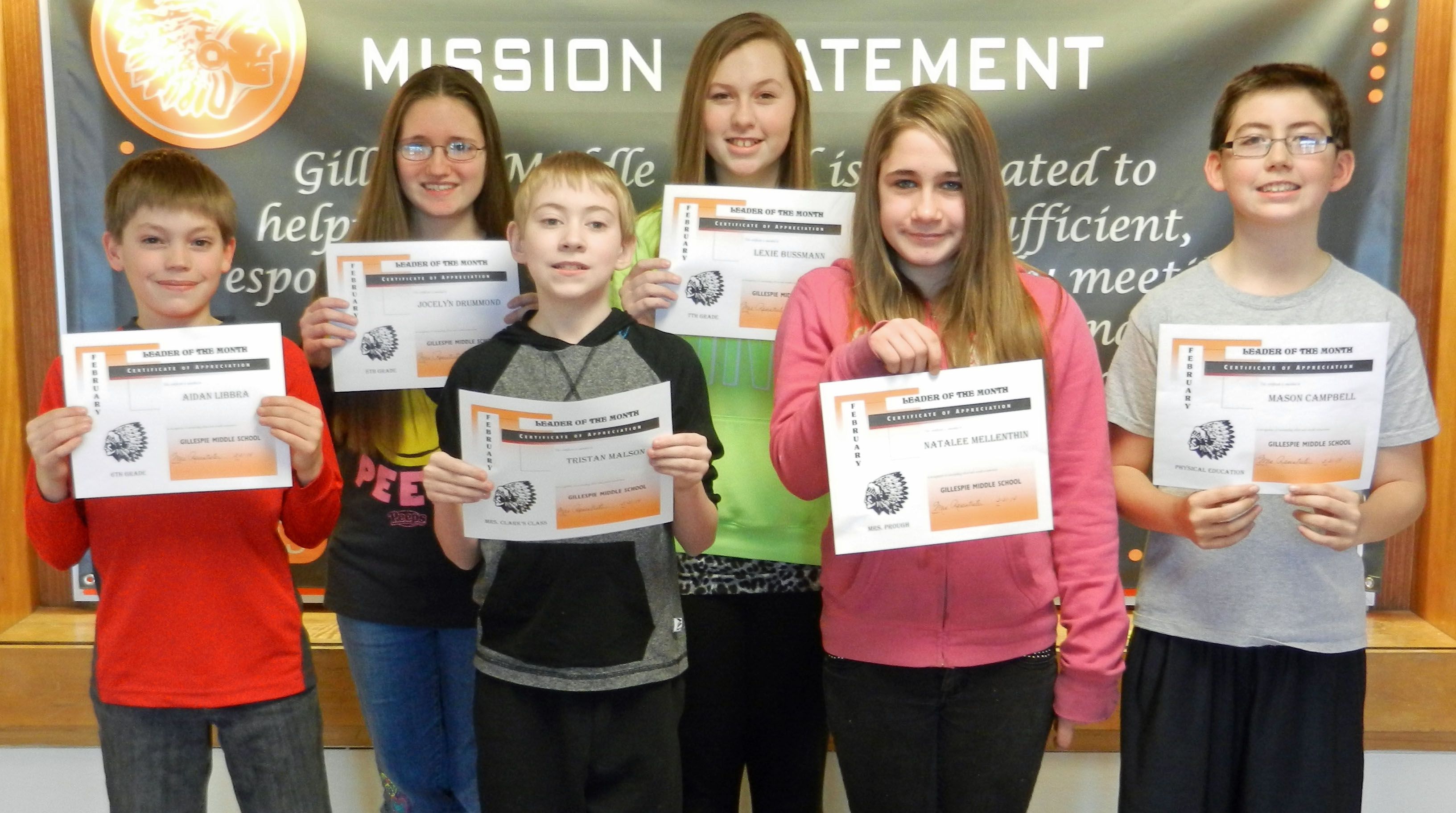 Gillespie Middle School has released their student of the month award members for the month of February. Students are nominated by the staff for their attitude...