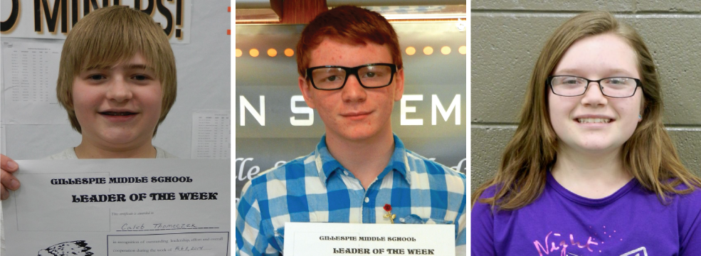 Gillespie Middle School has announced their leaders of the week for January 13 and January 20. The leaders for the respected weeks are Chase Redmon and...