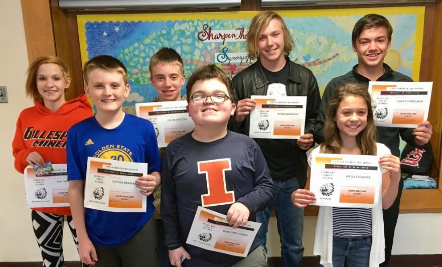 Gillespie Middle School announced February’s leaders of the month on Thursday afternoon. Earning the monthly award was Harrison O’Brien, Cayden Woodard, Ayden Madeline, Hailey Hughes, Jacob...