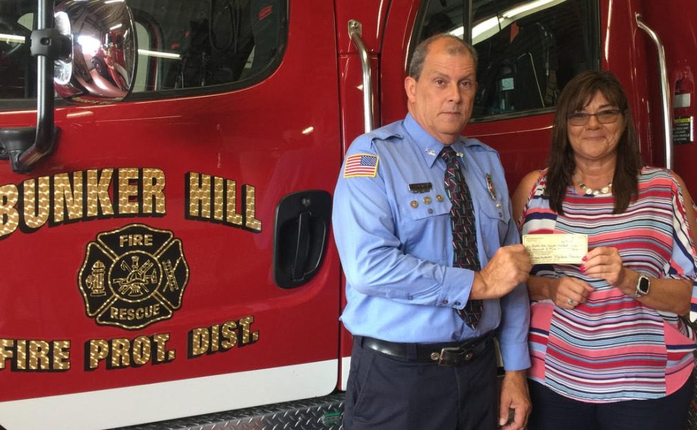 Regional Superintendent R.O.E. #40 and EMS Appreciation Day facilitator, Michelle Mueller, presented $1000 checks to Bunker Hill fireman BOE Yeager and Bunker Hill Ambulance Service Treasurer,...