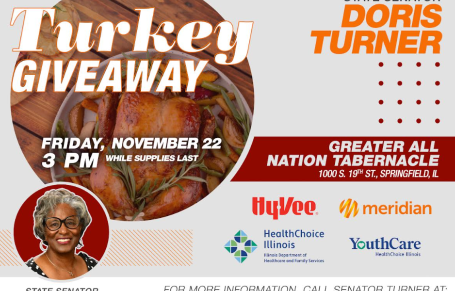 Contributed content SPRINGFIELD – State Senator Doris Turner is partnering with HyVee, Meridian, Youth Care, and Health Choice Illinois to host a turkey giveaway on Friday, Nov....