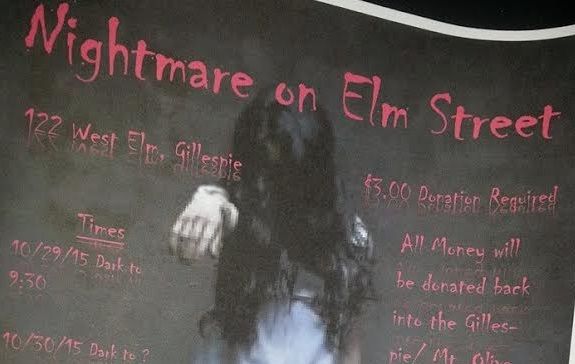 The “Nightmare on Elm Street” opens Thursday evening, October 29, at dusk and will run until 9:30 p.m. Friday and Saturday evenings it will also start at dusk and will run until the crowd slows down. “Don’t travel to St. Louis and pay big prices, come see us in Gillespie for our yard haunt on Elm Street,” the press release reads.