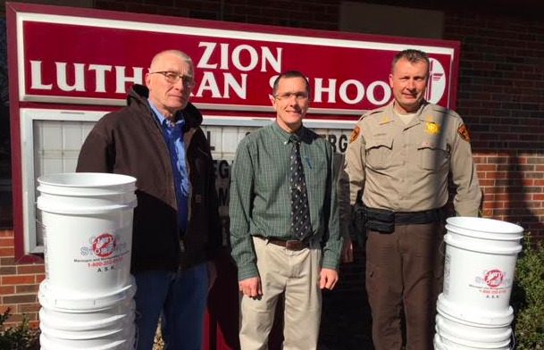 (L-R): Dale Weidler, President of Mac/Mont Crime Stoppers, John Schaff, Principal of Zion Lutheran School, and Rick Robbins, Montgomery County Undersheriff.