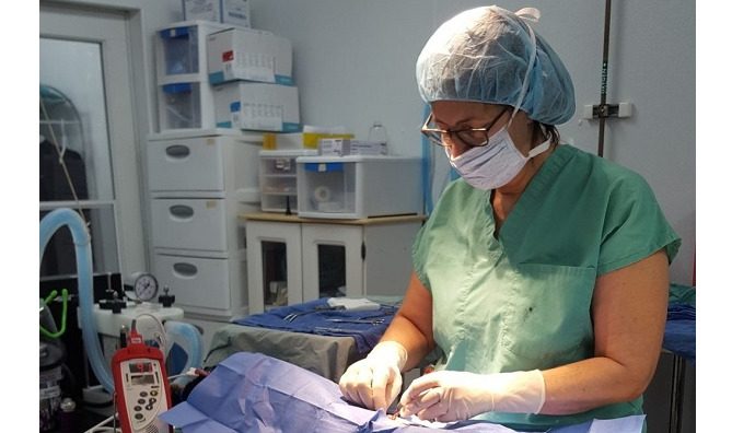 Pamela A. Clary, DVM of Mobile Veterinary Service performs an operation with the new monitor and warming blanket. (Contributed photo/Adopt a Pet)