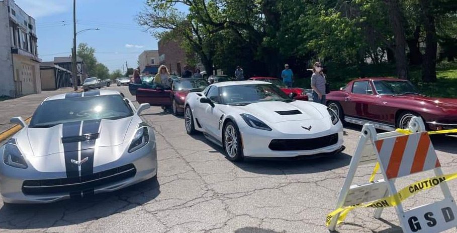 The biggest site to see took place later in the day when dozens of Corvettes cruised into town to patronage local establishments. Organized by Benld’s Lynn and Mike Shehorn, the Central Illinois Corvette Club made it into the area around lunchtime parking in a closed-off section of Chestnut Street parking three rows deep next to the museum.