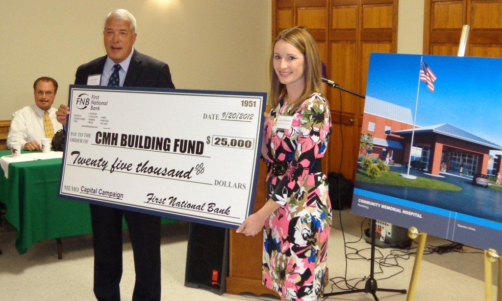 Staunton – First National Bank in Staunton has announced a generous donation and pledge to Community Memorial Hospital’s Keeping Healthcare Close to Home capital campaign that was kicked off recently.