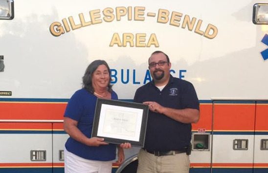 The Gillespie-Benld Area Ambulance Service (GBAAS), Inc. board of directors regretfully accepted the resignation of a long-time paramedic on Thursday, September 14, at their regular monthly meeting.