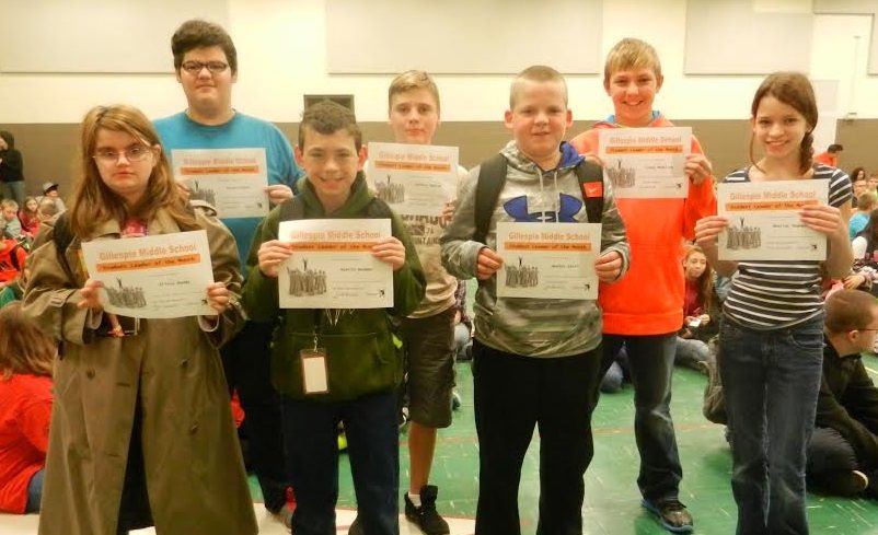 Gillespie Middle School announced Monday their leader of the month award winners for the month of October. Winners for the monthly award are Hunter Sarti, sixth grade; Ayden Madelin, seventh grade; Xavier Gosch, eighth grade; Jeffrey Marcum, Ms. Garde’s class; Austin Hormann, Ms. Berkel’s class; Destiny Hughes, P.E.; and Alivia Bondy, Mrs. Clark’s class.