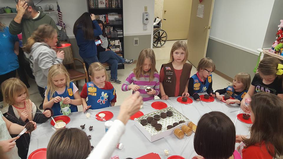 Local girl scouts decorated cookies and cupcakes at Heritage Health last week.