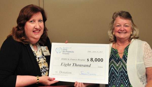 St. Francis Hospital accepted an $8,000 check from Jeanne Banovic and the hospital’s gift shop on June 22, which was the amount raised through the gift shop sales over the past year.