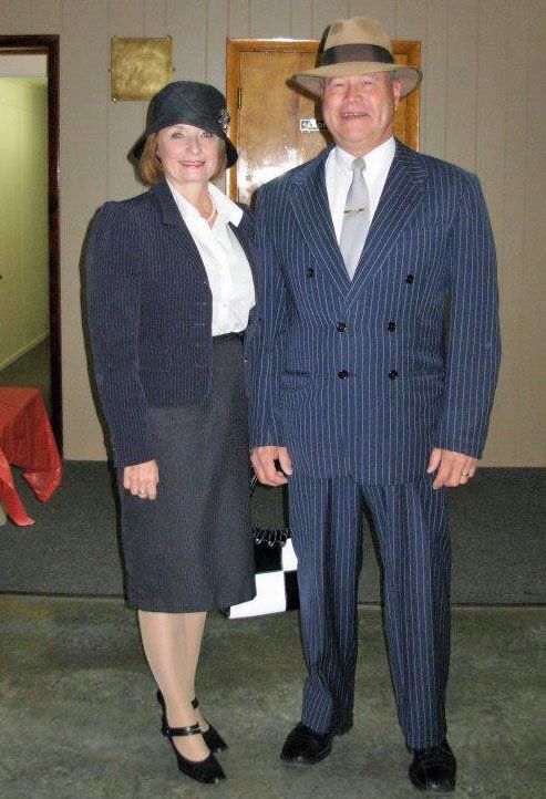 The public was encouraged to dress in 20’s garb and a good portion of the crowd came as mobsters, flappers, and 20’s characters. We even had a local newsboy (BB’s own Pat Obertino) sporting knickers while peddling papers with the headline that Capone had been seen at the Coliseum. Certificates and prizes (boas & tommy guns) were awarded in two categories: best costume and best couples costume with second and third places being handed out also. Mrs. Lillian Ashley (Staunton) won the prize best costume while Don and Shari Albrecht (Staunton), who came as Bonnie & Clyde, won the best couples costume.