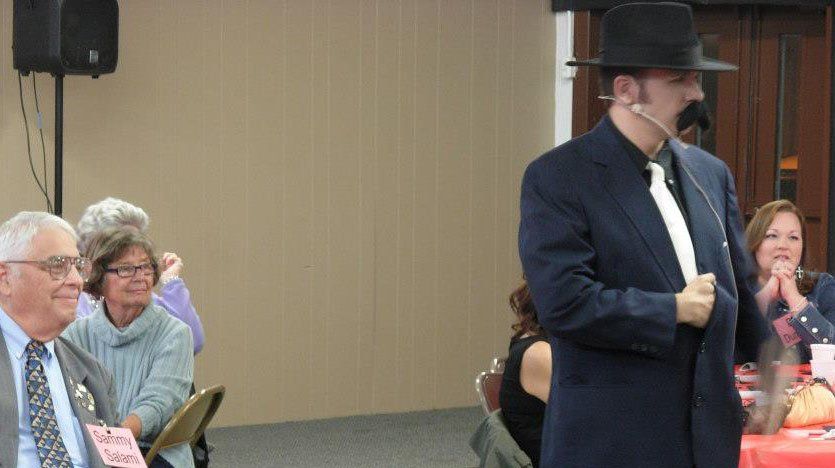 About 108 people gathered around at the Benld Civic Center on Saturday evening, October 20, to take part in a dinner show, Bullets in the Bathtub, presented by Build Benld. According to Gloria Sidar, event chairperson, everyone seemed to enjoy the troupe, the play chosen, and the audience participation.