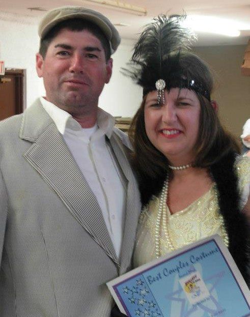 Don and Shari Albrecht (Staunton), who came as Bonnie & Clyde, won the best couples costume. (By Build Benld)