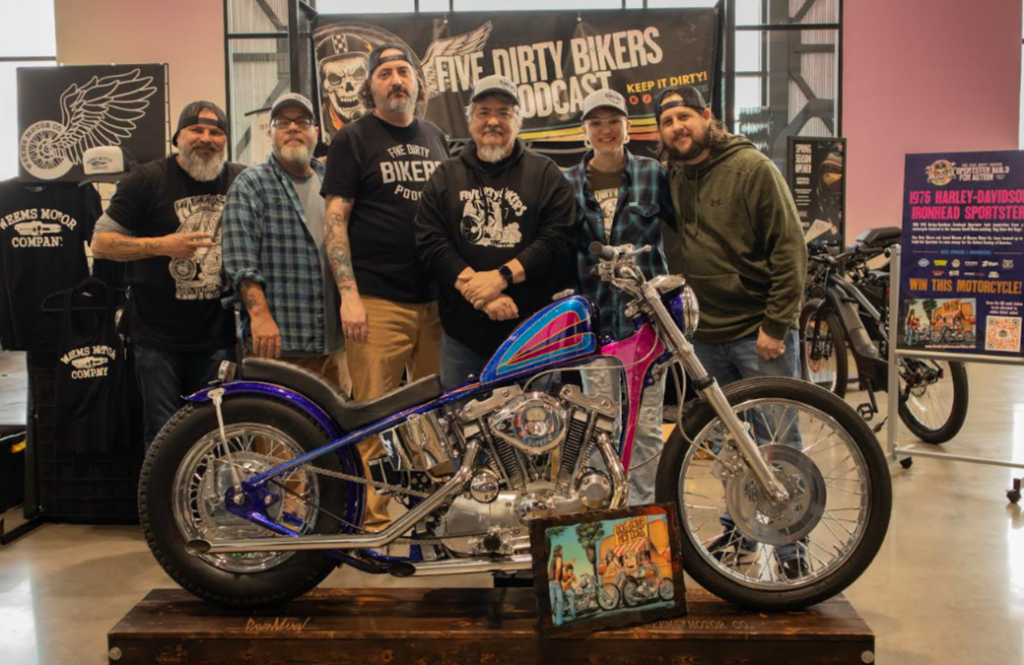 Local resident Dustin Thacker and his podcast “Five Dirty Bikers” are on a mission to raise funds and awareness for the autism community. Together with award-winning bike builder Jared Weems of Weems Motor Co., the group has produced an amazing 1975 Harley-Davidson Ironhead Sportster that is a replica bike inspired from a motorcycle seen in David Mann’s ‘Dog Gone Hot Dogs’ painting.
