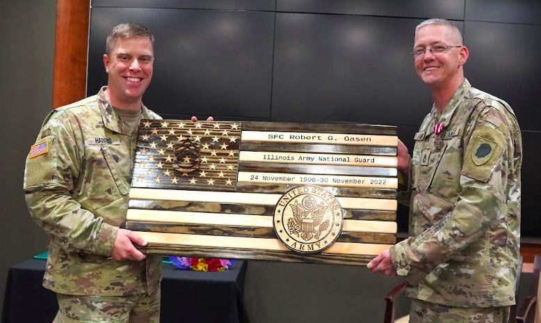 Some of Gasen’s awards include five Army Commendation Medals, two Army Achievement Medals, five Army Good Conduct Medals, the Iraqi Campaign Medal, the Illinois State Active Duty Ribbon and Combat Action Badge.