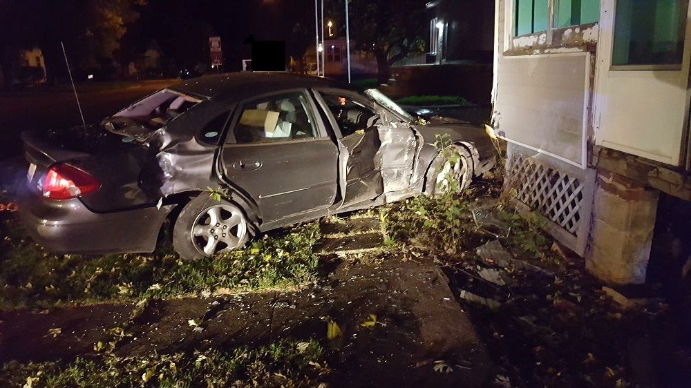 Educado A. Nuez, 23, of Gillespie was driving by himself in a Ford passenger car around 9:45 p.m. when he lost control of the car near Elm Street and Clay Street. Nuez was traveling west on Elm Street when neighbors at the scene reportedly heard him accelerate the vehicle before losing control and smashing into the front of a house in the 400 block of East Elm Street barely missing a charter bus.