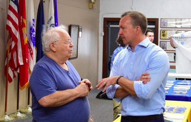 State Senator Andy Manar (right) talks to Benld Mayor Jim Kelly (left).
