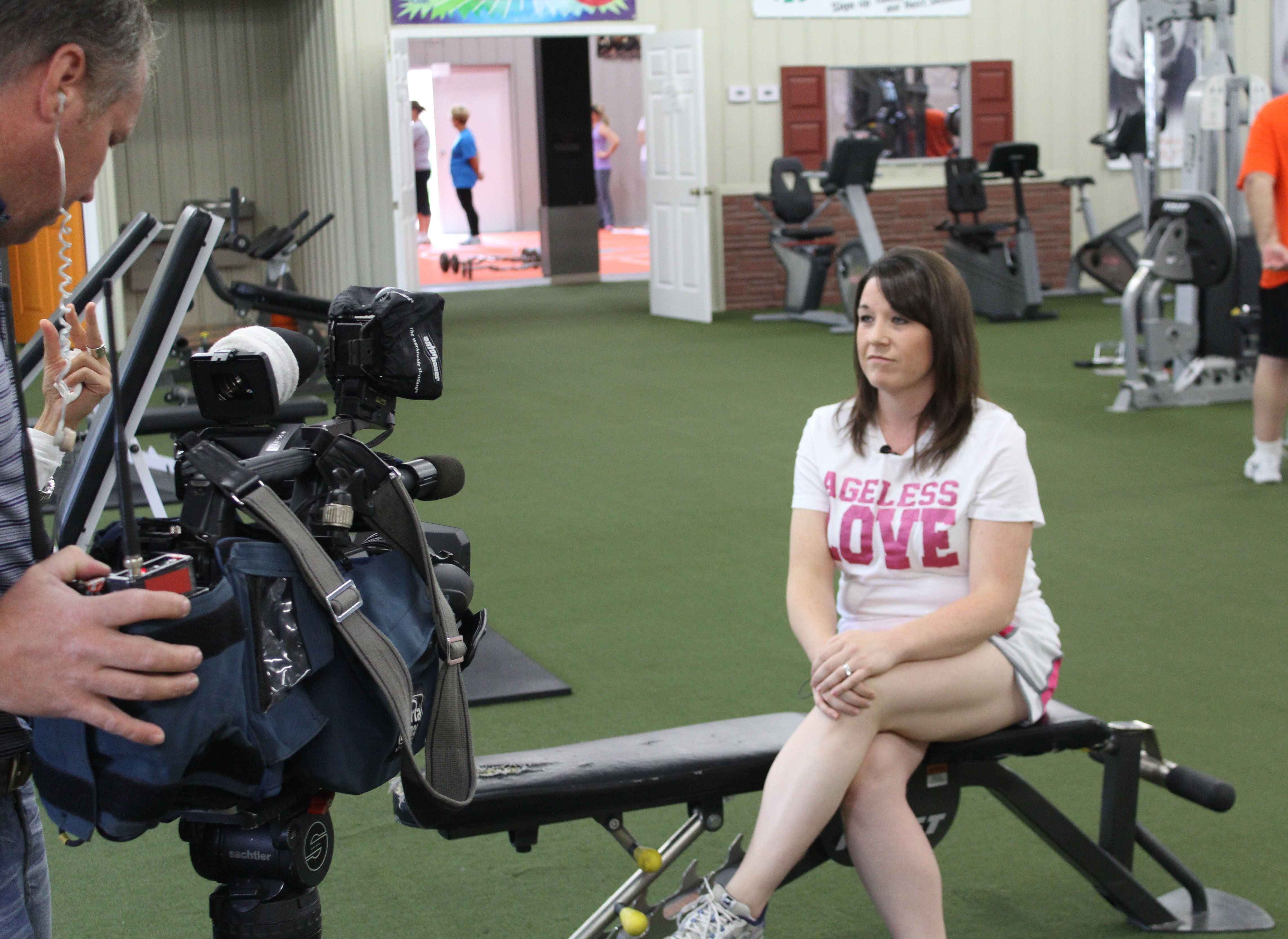 After the interview, Coletta and Dustin took part in a mini-bootcamp to show the news crew just a smidgen of what they do. Above, the camera man records the pair working out with their personal trainer, Pete Visintin, in the background.