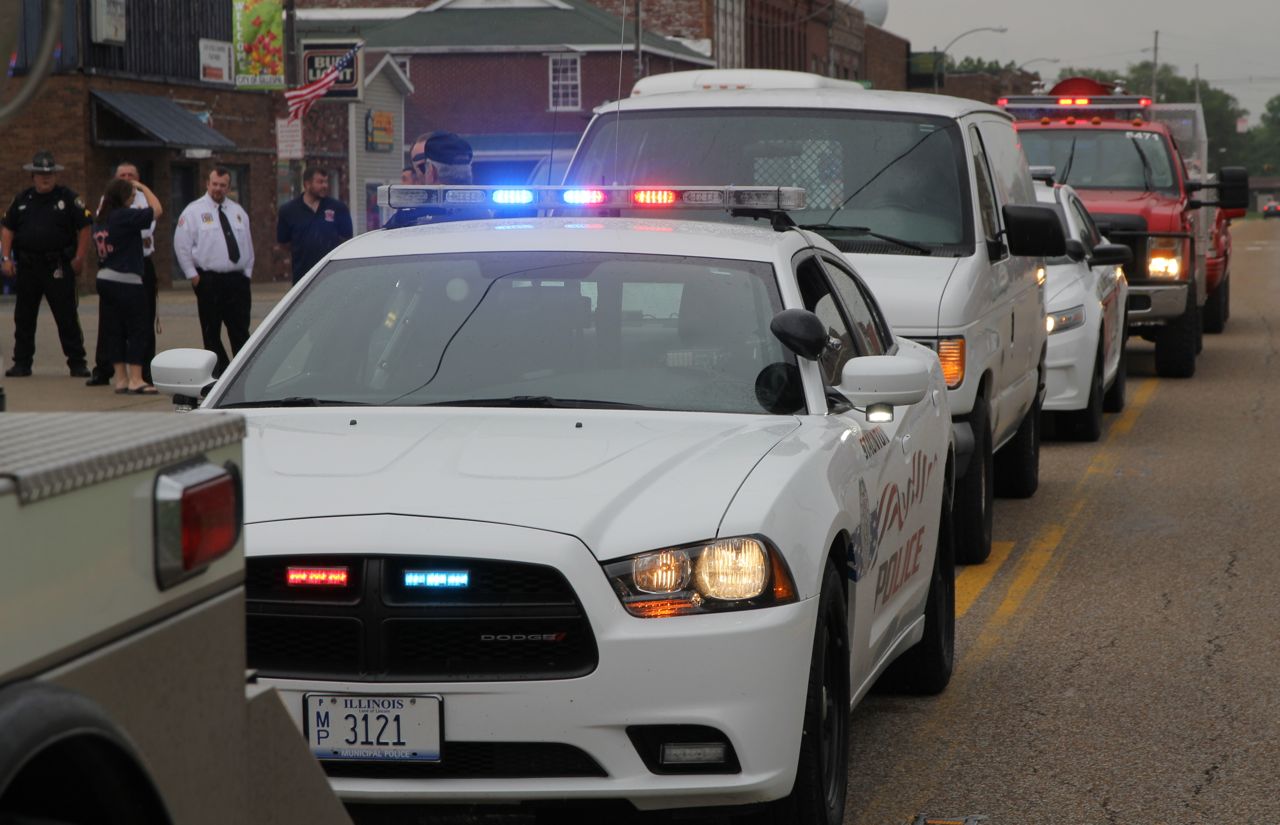 The Illinois State Police leads the caravan followed by the a county sheriff deputy.