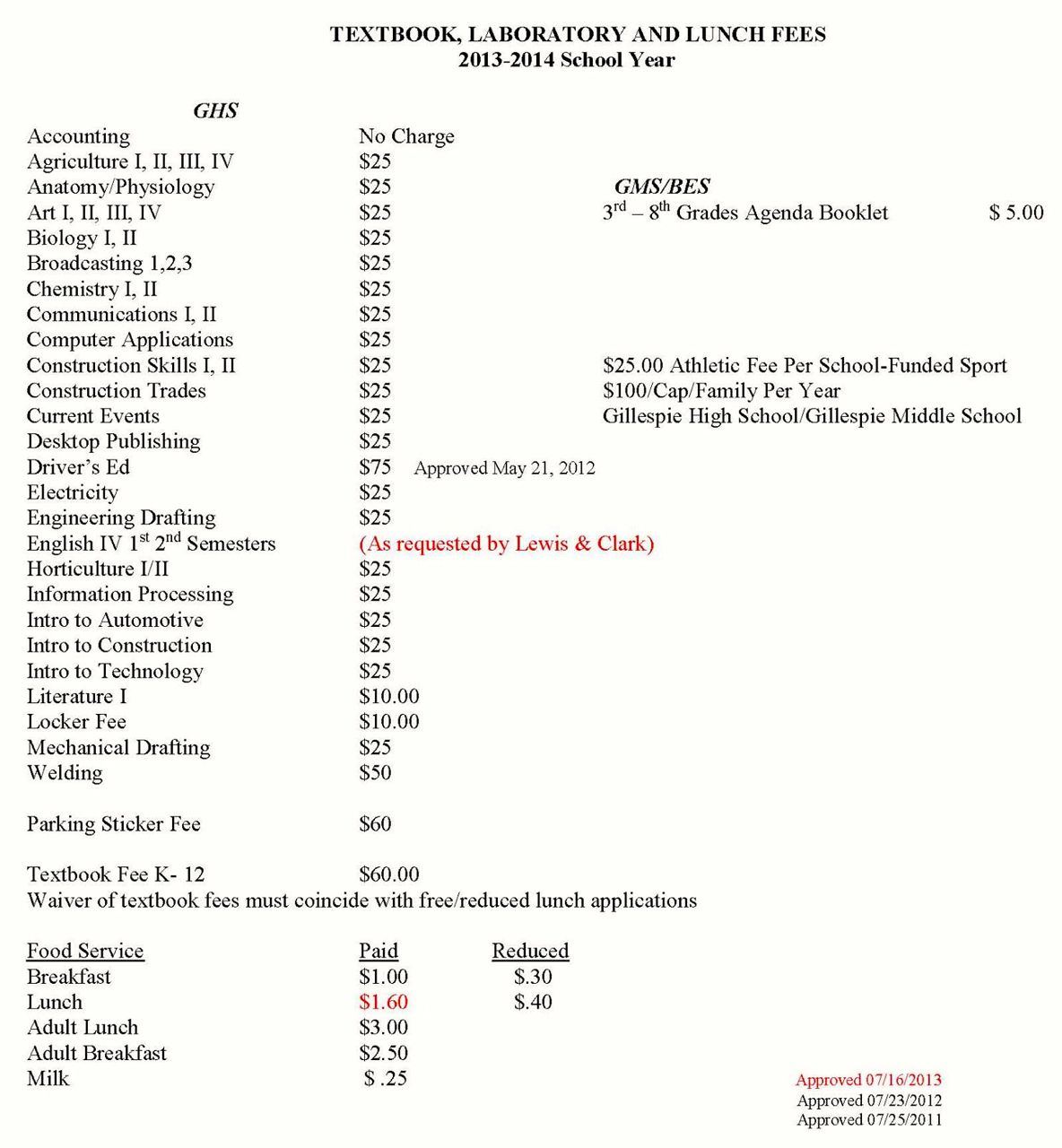 The book rental fee due at the time of registration is $60. The locker fee is $5 and student parking is available for the school year at a cost of $60. Some classes require additional fees, see here for the complete list of student fees for the high school.
