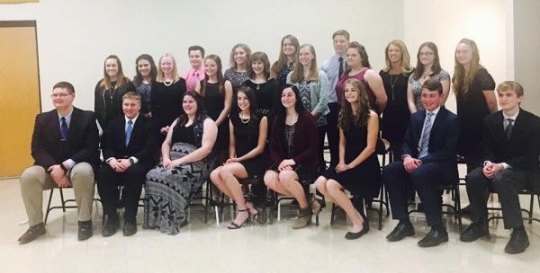 The 16 new members join six current members. Students are selected on the basis of their scholarship, service, leadership and character. The ceremony was led by President Amanda Schmidt with additional support from other senior members, Hannah Doty (vice president), Ally Bires (secretary), Jacob Martin (treasurer), Addison Bryant and Tate Wargo.