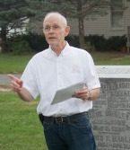 In front of Elison Braley’s grave and out of costume, Ralph Scheldt portrays Braley, during a rehearsal for the Tombstone Tales. Photo by Louise Jett