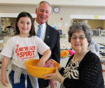 Jillian Smith, a first-grade student at Ben-Gil Elementary School (BGES) drew Julie’s name during the BGES annual spaghetti dinner. Jillian drew while John Fassero, Jr., president of The Partnership, looked on and Rose Marie Tebbe, treasurer, held a bowl filled with entrants’ names.