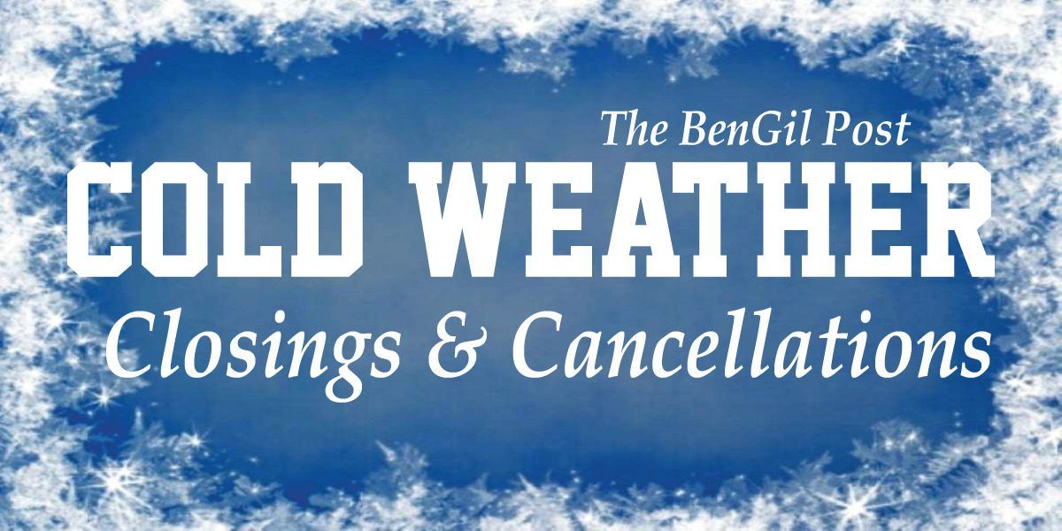 Check here for closings and cancellations. We’ll let you know about cancellations due to weather on TheBenGilPost.com, our Facebook page, and our Twitter account.