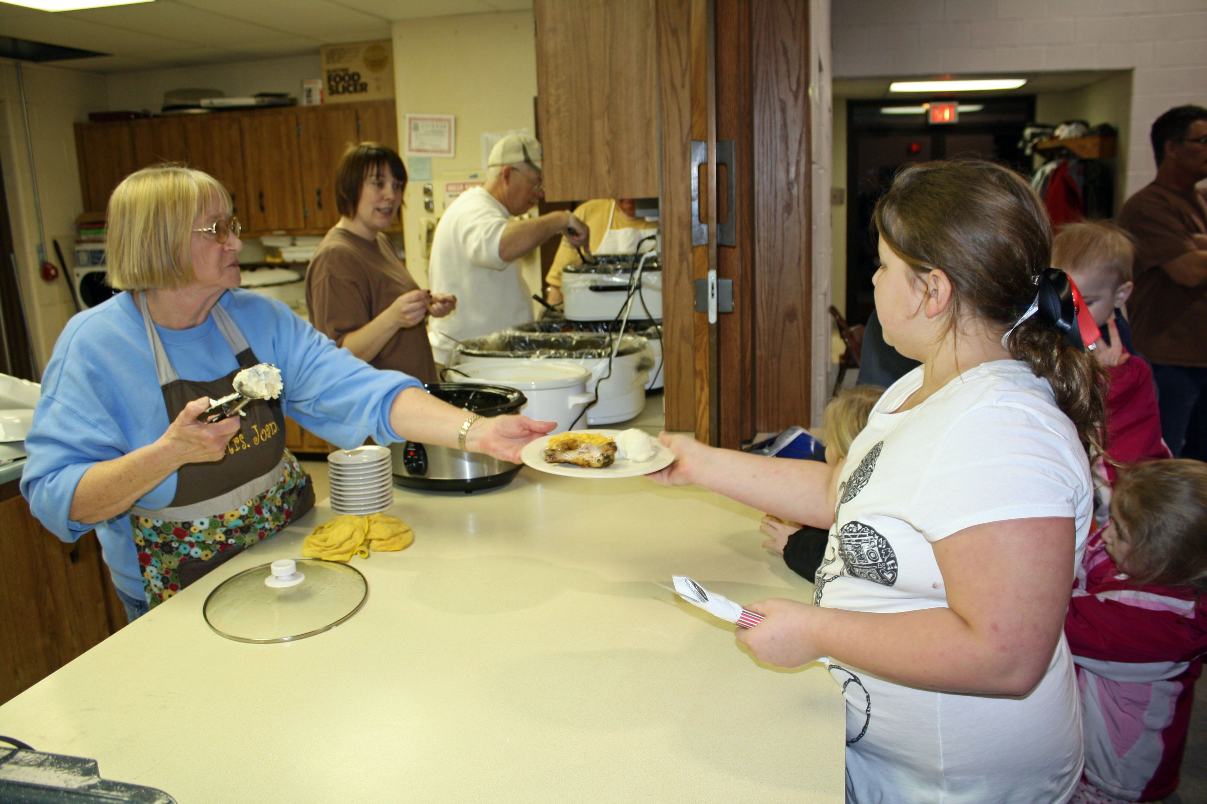 Harvest Feast volunteers at the Gillespie Methodist Church had over a plate of food to Gracie Vandoren. The Harvest Feast takes place on the last Wednesday of each month.