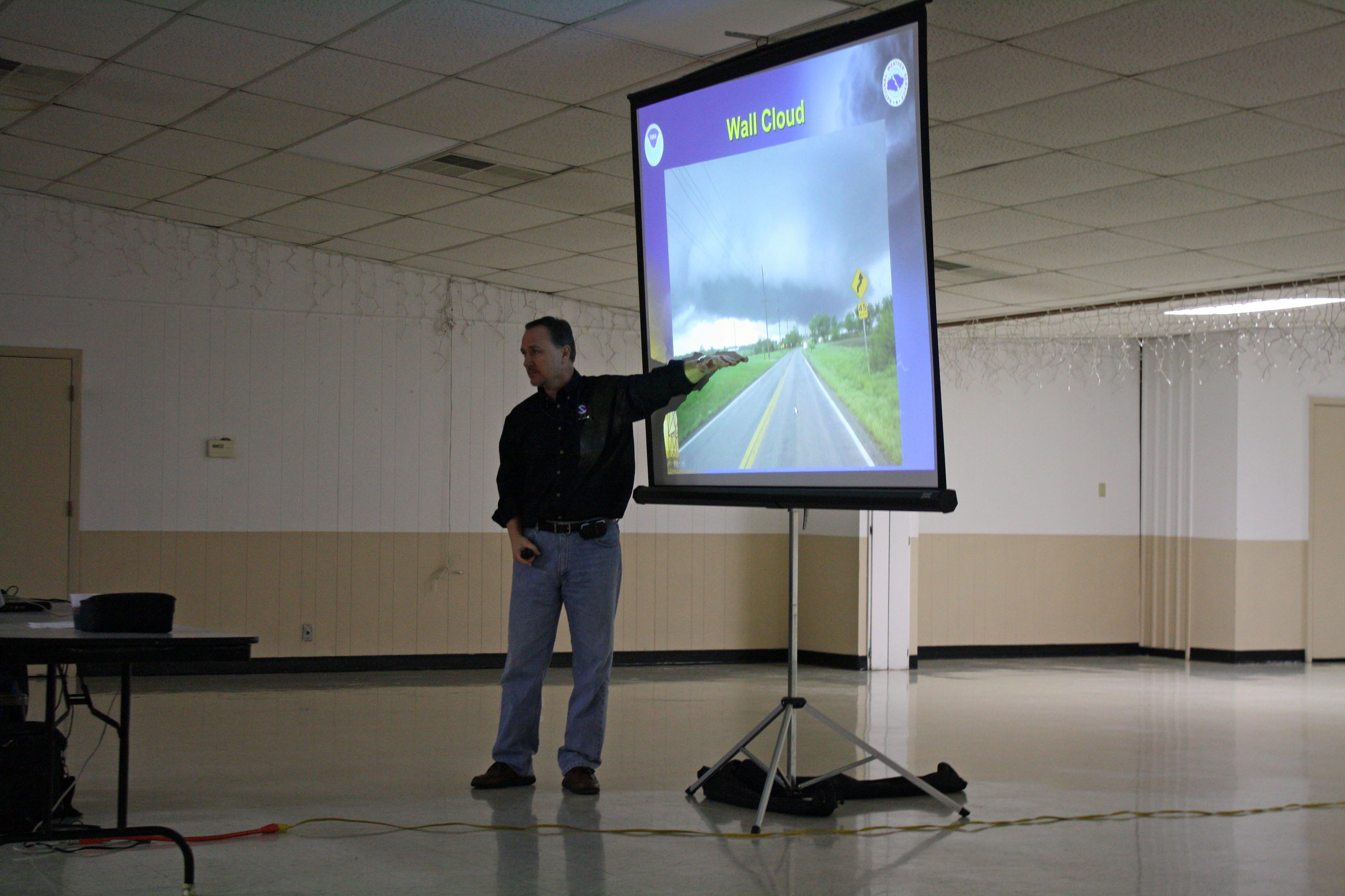Jim Kramper from the National Weather Service conducts a storm watchers class. Just under 100 people attended.