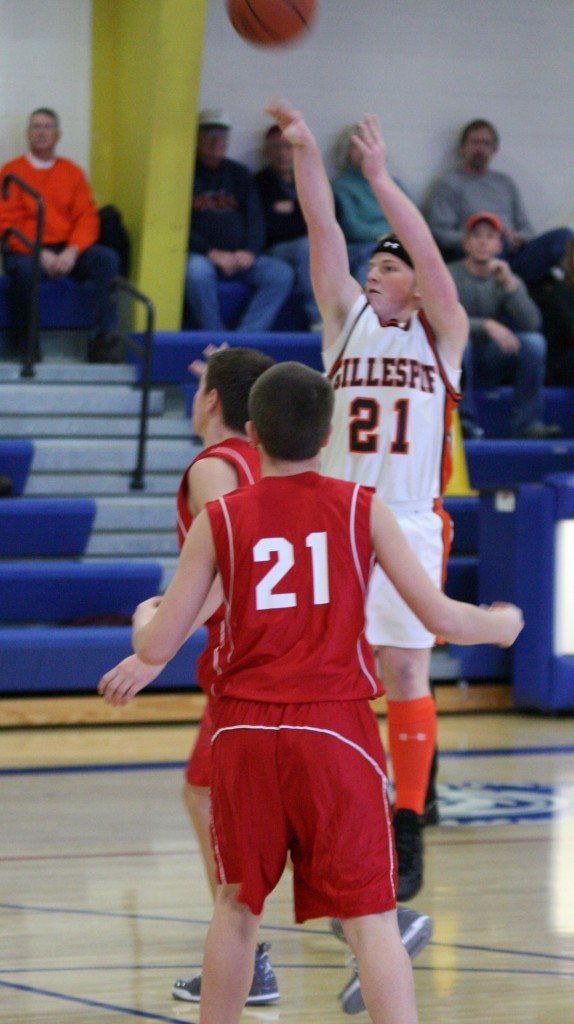 Eli Fox drains a jumpshot in the middle school boys first win in regionals.