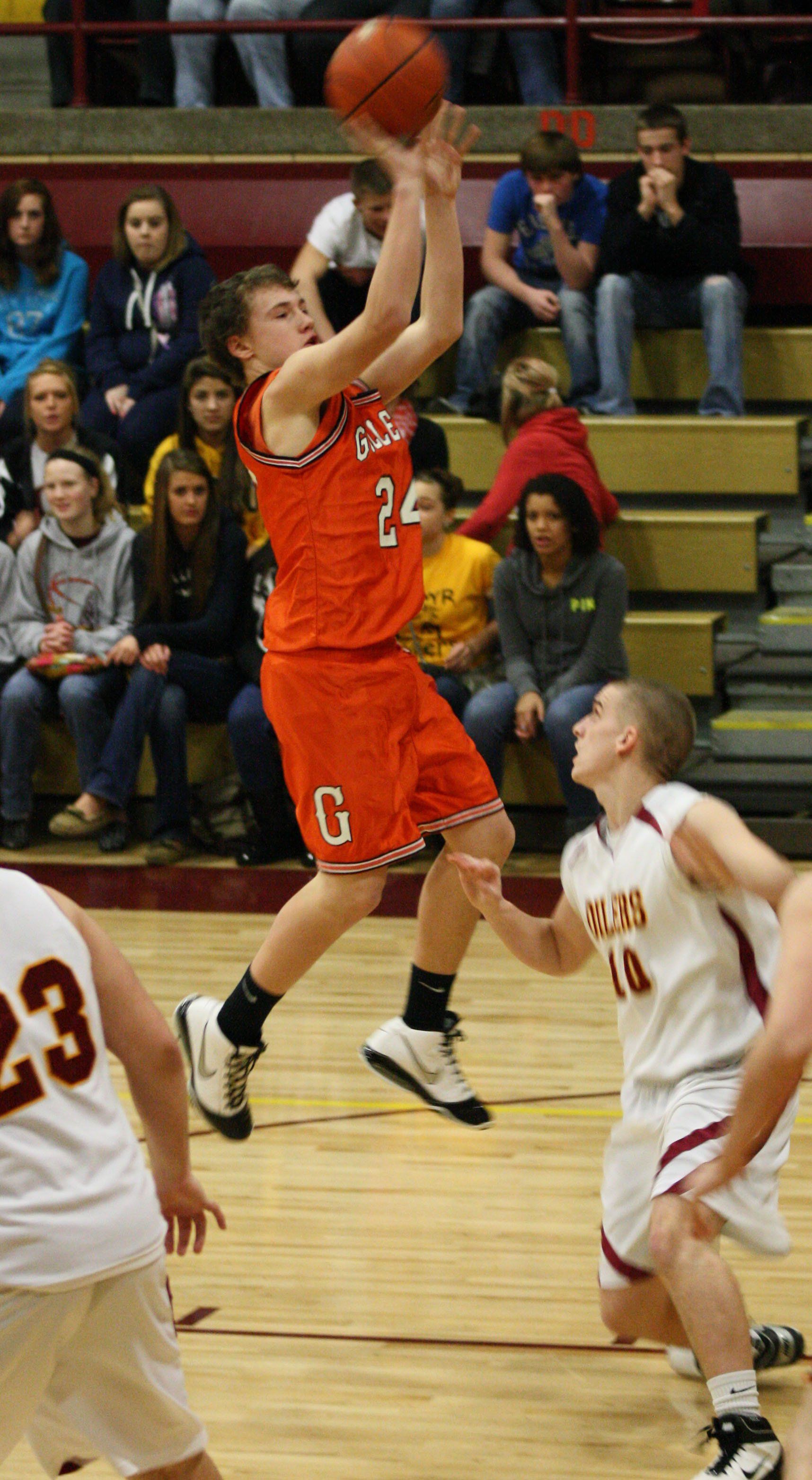 Cort Hellmann swishes a jumpshot near the free throw line in Fridays game against EAWR. The boys lost 52-48.