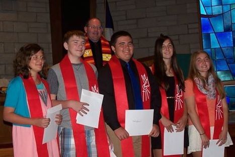 Five students were confirmed at the United Methodist Church of Gillespie last Sunday. The students include (L-R): Ruby Savant, Colin Caveny, Nick Spencer, Paige Niemeyer and Kayla Spencer. (Photo by Louann Brown)