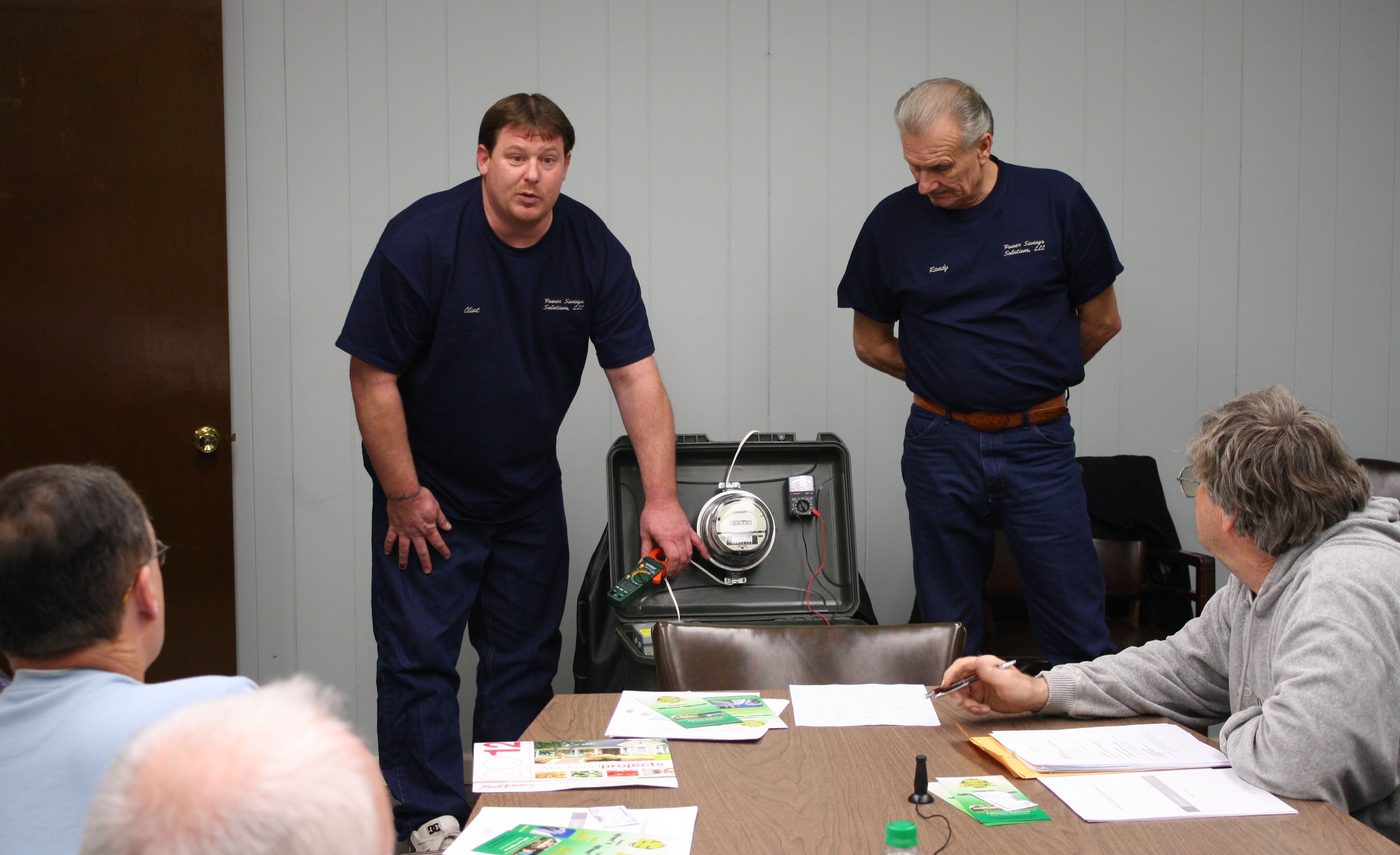 Clint Newingham demonstrates how the capacitors could save the City of Gillespie money.