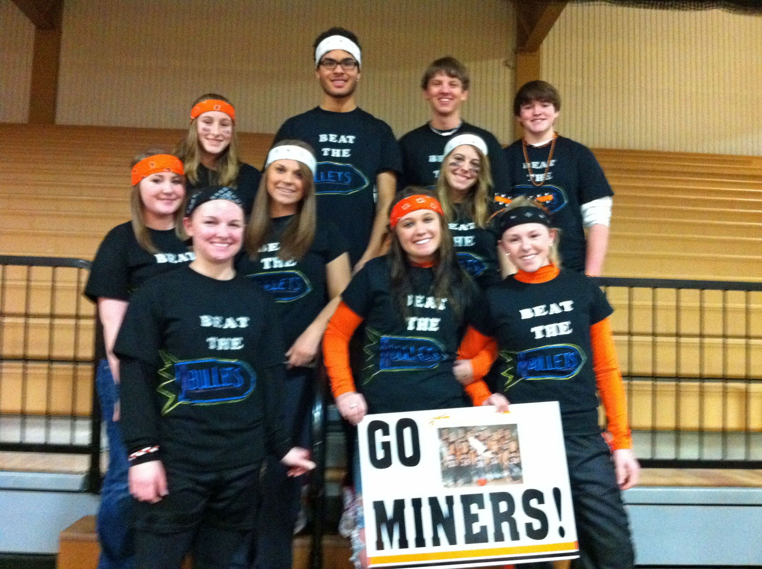 Students rally to support the Lady Miners in their game Monday evening in Beardstown. The Miners later lost 40-50 and ended their season. (By Elise Newman)