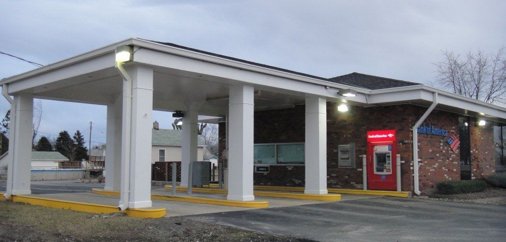 Bank of America paints its curbs this past week after announcing it will close mid-summer of 2012.