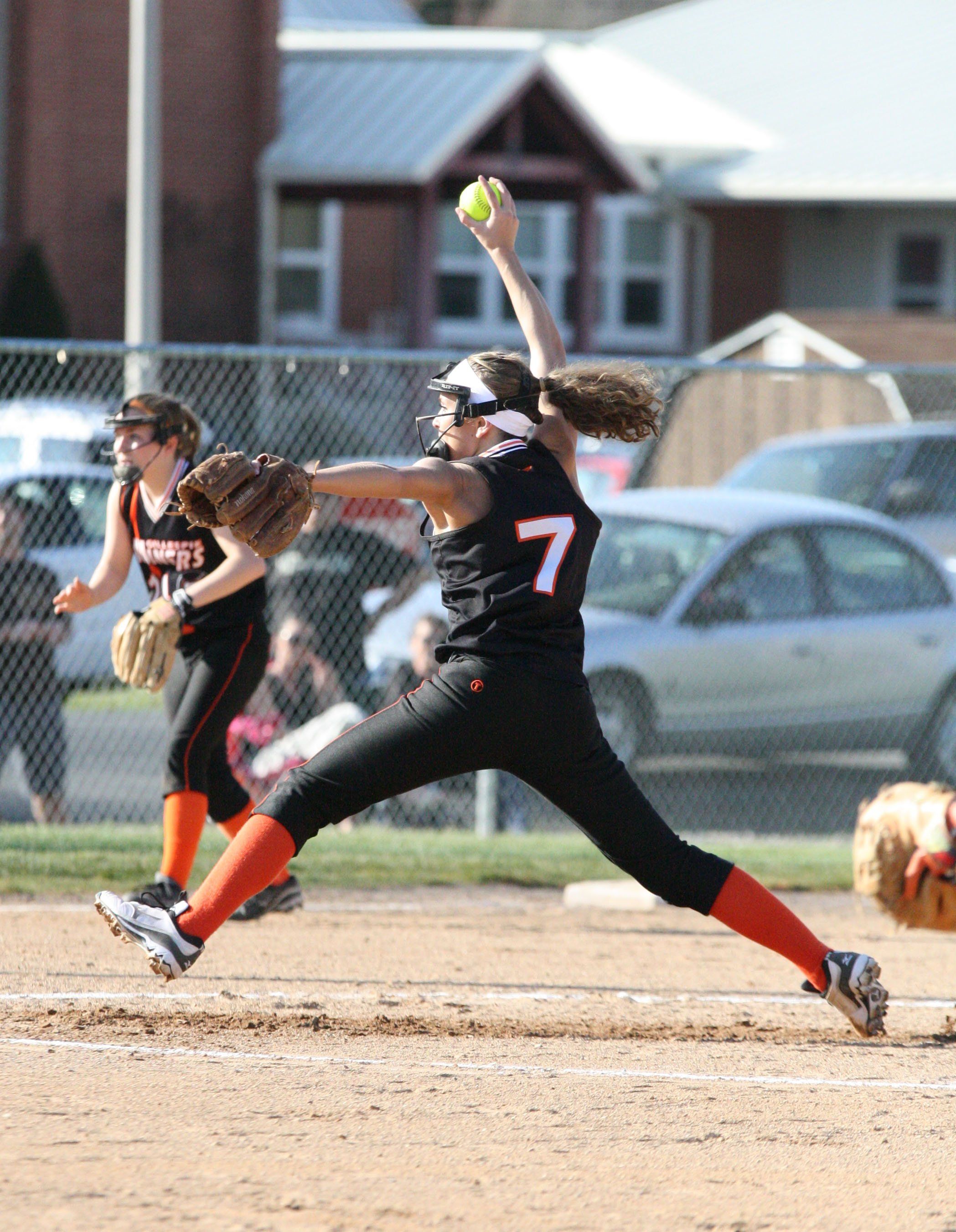 Laura Halpin strikes out 6 batters in the Miners' loss against Greenville. The Miners went on to beat Morrisonville and Edwardsville Metro last week to finish the week 2-1.
