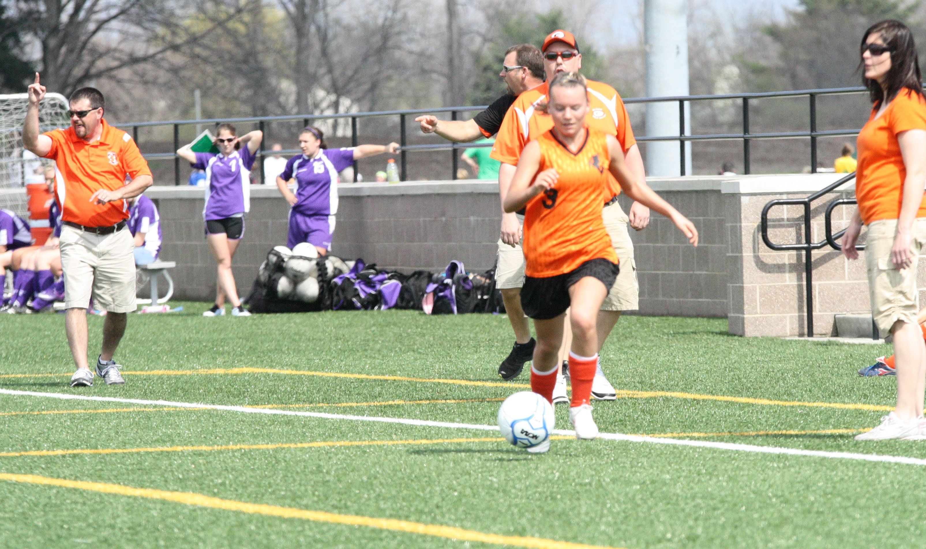 Katie Stromsland brings the ball down field in their victory over Breese Central to win the Metro Cup. The girls are now 4-0.