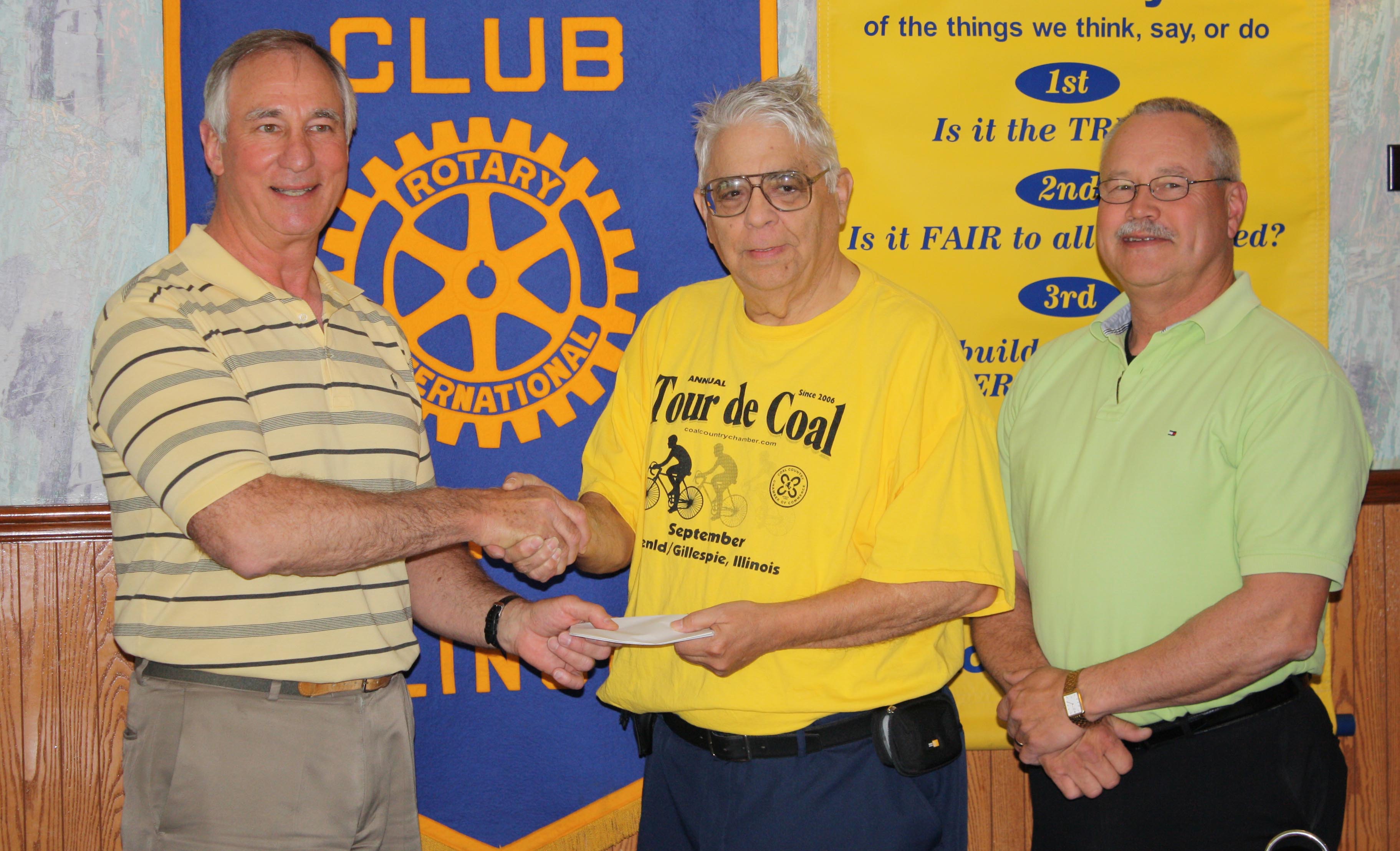Mickey Robinson accompanied by Sheriff Don Albrecht, on behalf of the Benld Rotary Club, are presenting a $500.00 check to John Fassero of the Partnership for Educational Excellence. The check will fund a $500.00 scholarship administered through the Partnership for a recipient from this year’s GILLESPIE High School graduating class.The Paws in the Park, sponsored by CCCC, attracted more than 50 pets.