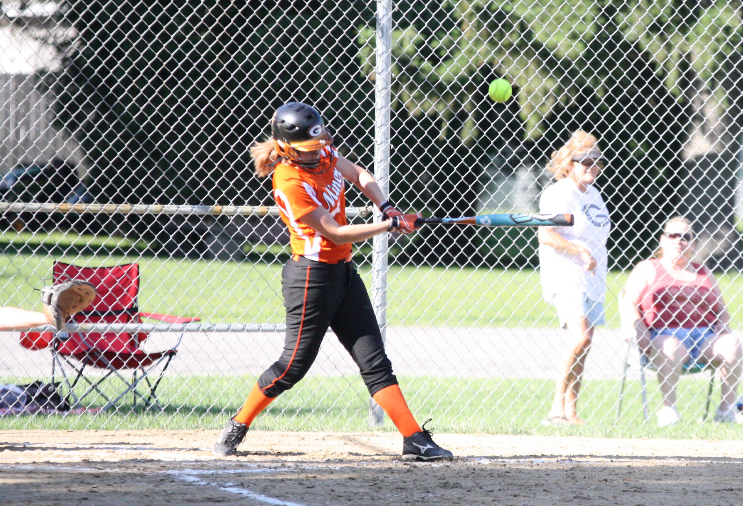 Taylor Monke flies to the outfield in the softball's win last week. The Miners beat Roxana 5-3.