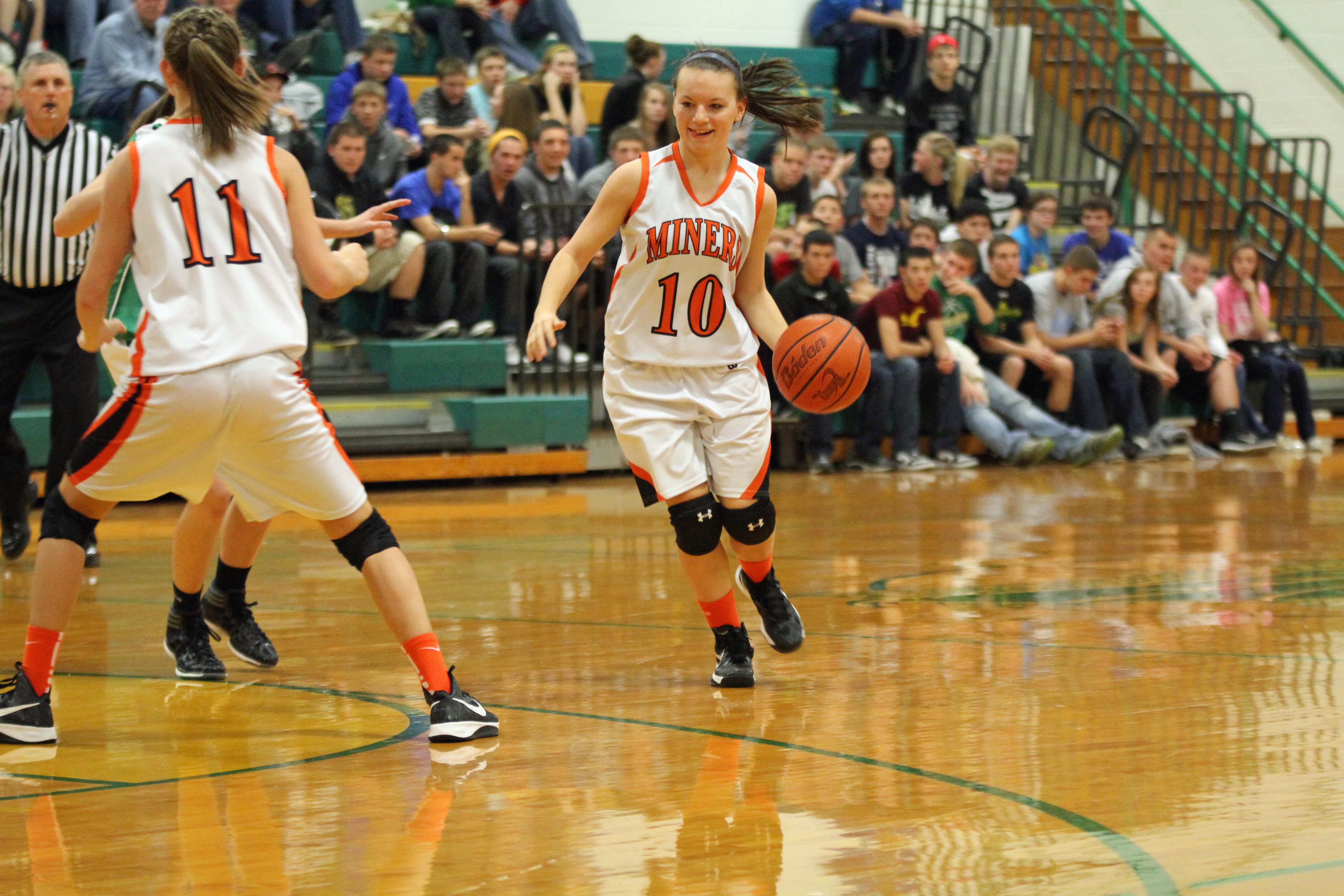 Tyler Ross takes advantage of a screen and dribbles toward the basket for an easy two points. The Lady Miners went 3-1 in the Southwestern Thanksgiving Tournament and took second place!