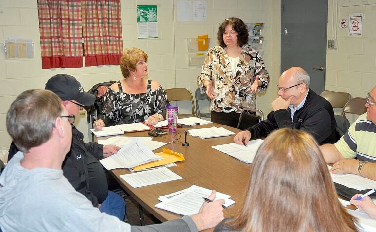 Brenda Masters-Stout, an accountant with Flemming-Tawfall Certified Public Accountants, fields questions from the Wilsonville Board of Trustees regarding the village audit that was delivered and accepted in November.With the clock ticking down on Village President Annetta Veres tenure as Village President, the Wilsonville Board of Trustees on Monday night accepted City Treasurer Gina Frensko’s proposal to assume duties as the village’s water bill preparer at a cost of $350 per quarter and agreed to waive a sizable mowing lien against a parcel of property recently purchased by a neighboring resident.